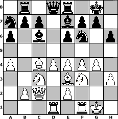 game notation in PGN-format [Event "Der Beste hinter den 1900ern(3/10) oder 10 hoch 2"] [Site "www.myChess.de"] [Date "2010.01.12"] [Round "1"] [White "Gambitianer"] [Black "lasker"] [ECO "C01"] [WhitemyELO "1803"] [BlackmyELO "1351"] [Result "0-1"] [TimeControl "10/864000"] [WhiteDays "00"] [BlackDays "10"] [MyChessNo "62345"] 1. e4 e6 2. d4 d5 3. c4 dxc4 4. Bxc4 Nf6 5. Nc3 Be7 6. f4 O-O 7. Nf3 Nc6 8. O-O a6 9. a4 Bd7 10. h3 Rb8 11. Be3 Na7 12. g4 Bc6 13. Qc2 h6 14. Rad1 Re8 0-1 position notation in FEN-format 1r1qr1k1/npp1bpp1/p1b1pn1p/8/P1BPPPP1/2N1BN1P/1PQ1P3/3R1RK1 - - - 2 15 Captured white pieces: Captured black pieces: Click on a captured piece in order to display the desired move!