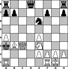 game notation in PGN-format [Event "Tanz in den Mai."] [Site "www.myChess.de"] [Date "2017.04.28"] [Round "1"] [White "Knight"] [Black "Achimkogge"] [ECO "C51"] [WhitemyELO "1169"] [BlackmyELO "1384"] [Result "1-0"] [TimeControl "10/2592000"] [WhiteDays "90"] [BlackDays "86"] [MyChessNo "107977"] 1. e4 e5 2. Nf3 Nc6 3. Bc4 Bc5 4. b4 d5 5. Bxd5 Nxb4 6. Bb3 Bg4 7. O-O Nf6 8. d3 Bd4 9. c3 Bxf3 10. Qxf3 Bxc3 11. Nxc3 Nxd3 12. Bg5 Nc5 13. Rad1 Qe7 14. Nd5 Qf8 15. Nxc7+ Ke7 16. Bxf6+ gxf6 17. Nd5+ Kd6 18. Nxf6+ Kc7 19. Nd5+ Kc6 20. Qf6+ Ne6 21. Rc1+ Kb5 22. a4+ Ka5 23. Qxe5 Qd8 24. Ne3+ Kb4 25. Qc3+ Ka3 26. Ra1# 1-0 position notation in FEN-format r2q3r/pp3p1p/4n3/8/P3P3/kBQ1N3/4PPPP/R4RK1 - - - 6 26 Captured white pieces: Captured black pieces: Click on a captured piece in order to display the desired move!