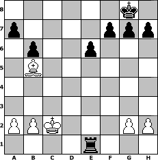 game notation in PGN-format [Event "FREUNDESTUNIER"] [Site "www.myChess.de"] [Date "2005.10.28"] [Round "1"] [White "Master1"] [Black "Knight"] [ECO "A45"] [WhitemyELO "1605"] [BlackmyELO "1280"] [Result "0-1"] [TimeControl "10/864000"] [WhiteDays "30"] [BlackDays "30"] [MyChessNo "18924"] 1. d4 Nf6 2. Nc3 d5 3. Nf3 e6 4. Bg5 Bb4 5. Qd2 Nc6 6. Bxf6 Qxf6 7. Qe3 O-O 8. O-O-O Re8 9. Ne5 Bxc3 10. Qxc3 Nxe5 11. dxe5 Qf4+ 12. e3 Qxf2 13. Qxc7 Qxe3+ 14. Kb1 b6 15. Qc6 Bd7 16. Qxd7 Qxe5 17. Bd3 Red8 18. Rde1 Qxe1+ 19. Rxe1 Rxd7 20. c4 dxc4 21. Bxc4 Rad8 22. Bb5 Rd1+ 23. Rxd1 Rxd1+ 24. Kc2 Re1 0-1 position notation in FEN-format 6k1/p4ppp/1p2p3/1B6/8/8/PPK3PP/4r3 - - - 2 25 Captured white pieces: Captured black pieces: Click on a captured piece in order to display the desired move!