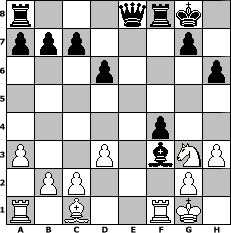 game notation in PGN-format [Event "Latvija"] [Site "www.myChess.de"] [Date "2017.07.03"] [Round "2"] [White "Seneca"] [Black "Andylein1989"] [ECO "C40"] [WhitemyELO "1502"] [BlackmyELO "1645"] [Result "0-1"] [TimeControl "10/2592000"] [WhiteDays "69"] [BlackDays "88"] [MyChessNo "108791"] 1. e4 e5 2. Nf3 f5 3. exf5 d6 4. d3 Bxf5 5. Be2 Nc6 6. O-O Be7 7. Nc3 Nf6 8. Nh4 Be6 9. Nf3 O-O 10. a3 Qc8 11. Ng5 Bd7 12. Nge4 Nd4 13. h3 Nxe2+ 14. Qxe2 h6 15. Nxf6+ Bxf6 16. Ne4 Bh4 17. Kh2 Qe8 18. f4 exf4 19. Qf3 Bg3+ 20. Kg1 Bc6 21. Nxg3 Bxf3 0-1 position notation in FEN-format r3qrk1/ppp3p1/3p3p/8/5p2/P2P1bNP/1PP3P1/R1B2RK1 - - - 0 22 Captured white pieces: Captured black pieces: Click on a captured piece in order to display the desired move!