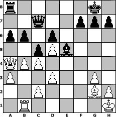 game notation in PGN-format [Event "Rechnerfrei B"] [Site "www.myChess.de"] [Date "2010.02.07"] [Round "1"] [White "rgHD"] [Black "brucybabe"] [ECO "A30"] [WhitemyELO "1611"] [BlackmyELO "1676"] [Result "1/2-1/2"] [TimeControl "10/1728000"] [WhiteDays "42"] [BlackDays "59"] [MyChessNo "62999"] 1. c4 c5 2. g3 Nf6 3. Bg2 Nc6 4. d3 Qc7 5. e4 e5 6. Nf3 Be7 7. Bg5 O-O 8. O-O d6 9. Nc3 a6 10. Bxf6 Bxf6 11. Nd5 Qd8 12. Rb1 Be6 13. a3 Bxd5 14. exd5 Nd4 15. b4 Nxf3+ 16. Bxf3 b6 17. Bg2 Qc7 18. f4 exf4 19. Rxf4 Bd4+ 20. Kh1 Rfe8 21. Re4 Re5 22. Rxe5 Bxe5 23. Qa4 1/2-1/2 position notation in FEN-format r5k1/2q2ppp/pp1p4/2pPb3/QPP5/P2P2P1/2P3BP/1R5K - - - 1 23 Captured white pieces: ![]() ![]() ![]() ![]() ![]() ![]() ![]() ![]() ![]() ![]() ![]() ![]() ![]() ![]() ![]() Captured black pieces: ![]() ![]() ![]() ![]() ![]() ![]() ![]() ![]() ![]() ![]() ![]() ![]() ![]() ![]() ![]() Click on a captured piece in order to display the desired move!