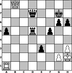 game notation in PGN-format [Event "mySchachR5 (1500-1900)"] [Site "www.myChess.de"] [Date "2008.01.18"] [Round "1"] [White "ujack1961"] [Black "johnnschy"] [ECO "B30"] [WhitemyELO "1695"] [BlackmyELO "1630"] [Result "0-1"] [TimeControl "10/1728000"] [WhiteDays "20"] [BlackDays "20"] [MyChessNo "41710"] 1. e4 c5 2. Nf3 Nc6 3. Bc4 Nf6 4. Ng5 e6 5. Nc3 h6 6. Nf3 Nxe4 7. Nxe4 d5 8. Bb5 dxe4 9. Ne5 Qd5 10. Nxc6 bxc6 11. Be2 c4 12. O-O Bc5 13. d3 cxd3 14. cxd3 Ba6 15. d4 Bxe2 16. Qxe2 Bxd4 17. Be3 Bxe3 18. Qxe3 O-O 19. Rfd1 Qe5 20. f4 Qxb2 21. Qxe4 Qb6+ 22. Kh1 Rad8 23. Rxd8 Rxd8 24. h3 Qf2 25. Qxc6 Qxf4 26. Qc5 a6 27. Qc6 a5 28. a4 Rd5 29. Rb1 g6 30. Kg1 Kg7 31. Rf1 Qd6 32. Qb7 Qd7 33. Qb2+ e5 34. Kh2 Qxa4 35. Qf2 f5 36. Qa7+ Qd7 37. Qb8 e4 38. Ra1 e3 0-1 position notation in FEN-format 1Q6/3q2k1/6pp/p2r1p2/8/4p2P/6PK/R7 - - - 0 39 Captured white pieces: ![]() ![]() ![]() ![]() ![]() ![]() ![]() ![]() ![]() ![]() ![]() ![]() ![]() ![]() ![]() Captured black pieces: ![]() ![]() ![]() ![]() ![]() ![]() ![]() ![]() ![]() ![]() ![]() ![]() ![]() ![]() ![]() Click on a captured piece in order to display the desired move!