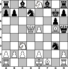 game notation in PGN-format [Event "Mal was anderes"] [Site "www.myChess.de"] [Date "2004.05.23"] [Round "1"] [White "TAR"] [Black "rikilatic"] [ECO "B07"] [WhitemyELO "1542"] [BlackmyELO "1423"] [Result "1-0"] [TimeControl "10/864000"] [WhiteDays "19"] [BlackDays "20"] [MyChessNo "4791"] 1. e4 d6 2. d4 Nf6 3. Nc3 Nc6 4. d5 Ne5 5. f4 Ned7 6. Nf3 e6 7. dxe6 fxe6 8. e5 dxe5 9. fxe5 Nh5 10. Ng5 g6 11. Nxe6 Qh4+ 12. g3 Nxg3 13. Bg5 Qh5 14. Nxc7+ Kf7 15. Qd5+ Kg7 16. Ne8# 1-0 position notation in FEN-format r1b1Nb1r/pp1n2kp/6p1/3QP1Bq/8/2N3n1/PPP1P2P/R3KB1R - KQ - 4 16 Captured white pieces: ![]() ![]() ![]() ![]() ![]() ![]() ![]() ![]() ![]() ![]() ![]() ![]() ![]() ![]() ![]() Captured black pieces: ![]() ![]() ![]() ![]() ![]() ![]() ![]() ![]() ![]() ![]() ![]() ![]() ![]() ![]() ![]() Click on a captured piece in order to display the desired move!