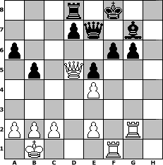 game notation in PGN-format [Event "Enkel-Meisterschaft 2017"] [Site "www.myChess.de"] [Date "2017.09.30"] [Round "1"] [White "kalle"] [Black "reisinger"] [ECO "B34"] [WhitemyELO "1640"] [BlackmyELO "1419"] [Result "1-0"] [TimeControl "10/2592000"] [WhiteDays "78"] [BlackDays "90"] [MyChessNo "109801"] 1. e4 c5 2. Nf3 Nc6 3. d4 cxd4 4. Nxd4 g6 5. Nc3 Bg7 6. Be3 a6 7. Qd2 Nxd4 8. Bxd4 e5 9. Bc5 Bh6 10. Qd5 Bg7 11. Bc4 Qf6 12. O-O-O Ne7 13. Qd2 b5 14. Nd5 Nxd5 15. Bxd5 Rb8 16. Bd6 Rb6 17. Bc7 O-O 18. Bxb6 Qxb6 19. g4 Rd8 20. h4 Bb7 21. h5 Bxd5 22. Qxd5 Qxf2 23. g5 Qf4+ 24. Kb1 Qxg5 25. hxg6 hxg6 26. Rdf1 Qe7 27. Rh2 Kf8 28. Rhf2 f6 29. Rg2 1-0 position notation in FEN-format 3r1k2/3pq1b1/p4pp1/1p1Qp3/4P3/8/PPP1P1R1/1K3R2 - - - 1 29 Captured white pieces: Captured black pieces: Click on a captured piece in order to display the desired move!
