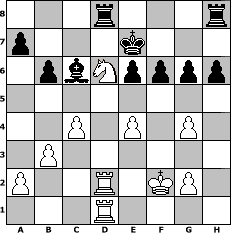 game notation in PGN-format [Event "Sommeranfang 2013"] [Site "www.myChess.de"] [Date "2013.06.21"] [Round "1"] [Board "1"] [White "Grubengeist"] [Black "HenrySchinasky"] [ECO "B73"] [WhitemyELO "1951"] [BlackmyELO "2126"] [Result "1/2-1/2"] [TimeControl "10/2592000"] [WhiteDays "28"] [BlackDays "30"] [MyChessNo "88938"] 1. e4 c5 2. Nf3 d6 3. d4 cxd4 4. Nxd4 Nf6 5. Nc3 g6 6. Be3 Bg7 7. Be2 Nc6 8. O-O O-O 9. Qd2 Ng4 10. Bxg4 Bxg4 11. Nd5 Bd7 12. c4 Ne5 13. b3 e6 14. Nc3 Ng4 15. Bg5 Qa5 16. h3 Qe5 17. hxg4 Qxd4 18. Qxd4 Bxd4 19. Rac1 f6 20. Be3 Bxe3 21. fxe3 Kf7 22. Rcd1 Ke7 23. Kf2 Rh8 24. Rh1 h6 25. Rd2 Bc6 26. Rhd1 Rad8 27. Nb5 Bxe4 28. Nxd6 Bc6 29. e4 b6 1/2-1/2 position notation in FEN-format 3r3r/p3k3/1pbNpppp/8/2P1P1P1/1P6/P2R1KP1/3R4 - - - 0 30 Captured white pieces: Captured black pieces: Click on a captured piece in order to display the desired move!