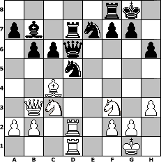 | game notation in PGN-format [Event "Schach-Cafe-Turnier 2014"] [Site "www.myChess.de"] [Date "2014.05.07"] [Round "1"] [White "lasker"] [Black "Andylein1989"] [ECO "D37"] [WhitemyELO "1177"] [BlackmyELO "1506"] [Result "0-1"] [TimeControl "10/2592000"] [WhiteDays "00"] [BlackDays "28"] [MyChessNo "94328"] 1. d4 d5 2. c4 e6 3. Nc3 Nf6 4. Nf3 b6 5. Bg5 Be7 6. cxd5 Nxd5 7. Bxe7 Nxe7 8. e4 Bb7 9. Bc4 O-O 10. O-O Nbc6 11. Re1 h6 12. d5 exd5 13. exd5 Nb4 14. Qb3 Nbxd5 15. Rad1 c6 16. h3 Qd6 17. Re2 Rad8 18. Red2 Rd7 0-1 position notation in FEN-format 5rk1/pb1rnpp1/1ppq3p/3n4/2B5/1QN2N1P/PP1R1PP1/3R2K1 - - - 5 19 Captured white pieces:                              Captured black pieces:                               Click on a captured piece in order to display the desired move!