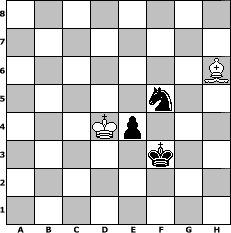 game notation in PGN-format [Event "Weihnachten 2017"] [Site "www.myChess.de"] [Date "2017.12.14"] [Round "1"] [White "borsti"] [Black "sprinterde"] [ECO "D00"] [WhitemyELO "1256"] [BlackmyELO "1700"] [Result "0-1"] [TimeControl "10/1728000"] [WhiteDays "174"] [BlackDays "179"] [MyChessNo "110704"] 1. d4 d5 2. Bf4 Nc6 3. e3 Bf5 4. Nc3 Nb4 5. Bd3 Nxd3+ 6. cxd3 e6 7. Nf3 Bb4 8. O-O h6 9. Qa4+ c6 10. Qxb4 Bxd3 11. Rfd1 Ba6 12. Ne5 Ne7 13. Na4 O-O 14. Nc5 Re8 15. Nxa6 bxa6 16. Rac1 g5 17. Bg3 a5 18. Qb7 Qb6 19. Qxb6 axb6 20. Nxc6 Nf5 21. Bc7 Rec8 22. Ne7+ Nxe7 23. Bxb6 a4 24. Rxc8+ Rxc8 25. Bc5 Nf5 26. g4 Nh4 27. Rb1 Nf3+ 28. Kg2 Nd2 29. Rd1 Nc4 30. b3 axb3 31. axb3 Na5 32. b4 Nc4 33. Ra1 Kg7 34. Ra6 Rb8 35. Kf3 Kg6 36. Ra7 Nb2 37. Ke2 Nc4 38. Kd3 Rh8 39. b5 h5 40. h3 hxg4 41. hxg4 Rb8 42. Ra6 Rxb5 43. Ra2 Rb1 44. Ke2 Rb2+ 45. Rxb2 Nxb2 46. f4 f5 47. Kf3 fxg4+ 48. Kxg4 gxf4 49. Kxf4 Nd3+ 50. Kg4 e5 51. Bb6 e4 52. Bd8 Nf2+ 53. Kf4 Nd3+ 54. Kg4 Ne1 55. Bg5 Ng2 56. Bf4 Kf6 57. Bg5+ Kg6 58. Bf4 Kf6 59. Kg3 Ne1 60. Kg4 Nd3 61. Bg5+ Kg6 62. Bd8 Nf2+ 63. Kf4 Nd1 64. Ba5 Kf6 65. Bc7 Nb2 66. Bd8+ Ke6 67. Bg5 Nc4 68. Kg4 Nd6 69. Bf4 Nf7 70. Kh5 Kf5 71. Bh2 Ng5 72. Kh6 Kg4 73. Kg6 Nf3 74. Bf4 Nxd4 75. Kf6 Kf3 76. Ke5 Ne2 77. Bh6 Nc3 78. Kd4 Nd1 79. Bf4 Nb2 80. Kxd5 Nd3 81. Bh6 Nb4+ 82. Ke5 Nc2 83. Kd5 Nxe3+ 84. Kd4 Nf5+ 0-1 position notation in FEN-format 8/8/7B/5n2/3Kp3/5k2/8/8 - - - 2 85 Captured white pieces: Captured black pieces: Click on a captured piece in order to display the desired move!