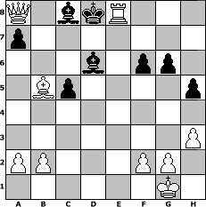 game notation in PGN-format [Event "1.Chess in Friendship"] [Site "www.myChess.de"] [Date "2004.08.10"] [Round "2"] [White "icke"] [Black "Evilduff"] [ECO "A00"] [WhitemyELO "1272"] [BlackmyELO "1500"] [Result "1-0"] [TimeControl "10/2592000"] [WhiteDays "89"] [BlackDays "88"] [MyChessNo "6106"] 1. e3 Nf6 2. Nc3 d5 3. d3 c6 4. d4 Bg4 5. Be2 h5 6. h3 Bf5 7. Bd3 e6 8. Nf3 Qc7 9. Ne5 Rh6 10. Qe2 c5 11. e4 dxe4 12. Bb5+ Ke7 13. Bf4 Rh8 14. O-O Nc6 15. Rad1 Nxd4 16. Qc4 Rd8 17. Rfe1 Nxc2 18. Ng6+ fxg6 19. Bxc7 Nxe1 20. Bxd8+ Kf7 21. Nd5 Bd6 22. Bxf6 gxf6 23. Rxe1 exd5 24. Qxd5+ Ke7 25. Qxb7+ Kd8 26. Qa8+ Bc8 27. Rxe4 Re8 28. Rxe8+ 1-0 position notation in FEN-format Q1bkR3/p7/3b1pp1/1Bp4p/8/7P/PP3PP1/6K1 - - - 0 28 Captured white pieces: Captured black pieces: Click on a captured piece in order to display the desired move!