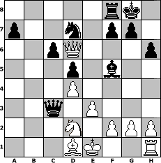 game notation in PGN-format [Event "LASKER 2016/1916"] [Site "www.myChess.de"] [Date "2016.10.26"] [Round "1"] [White "sprinterde"] [Black "martinus"] [ECO "D57"] [WhitemyELO "1703"] [BlackmyELO "1757"] [Result "0-1"] [TimeControl "10/2592000"] [WhiteDays "59"] [BlackDays "89"] [MyChessNo "105403"] 1. d4 d5 2. c4 e6 3. Nc3 Nf6 4. Bg5 Be7 5. e3 O-O 6. Nf3 h6 7. Bh4 Ne4 8. Bxe7 Qxe7 9. cxd5 Nxc3 10. bxc3 exd5 11. Qb3 c6 12. Rb1 Bf5 13. Qxb7 Qa3 14. Qb3 Qa5 15. Qb4 Qxa2 16. Rd1 Nd7 17. Be2 Rab8 18. Qd6 Rb2 19. Rd2 Rxd2 20. Nxd2 Qa1+ 21. Bd1 Qxc3 0-1 position notation in FEN-format 5rk1/p2n1pp1/2pQ3p/3p1b2/3P4/2q1P3/3N1PPP/3BK2R - K - 0 22 Captured white pieces: Captured black pieces: Click on a captured piece in order to display the desired move!