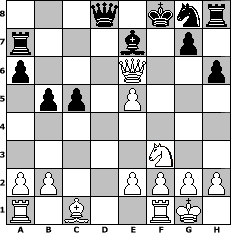 game notation in PGN-format [Event "Sommerevent"] [Site "www.myChess.de"] [Date "2018.07.12"] [Round "1"] [White "Ziegert"] [Black "lotchi"] [ECO "C60"] [WhitemyELO "1622"] [BlackmyELO "1046"] [Result "0-1"] [TimeControl "10/1728000"] [WhiteDays "00"] [BlackDays "14"] [MyChessNo "112627"] 1. e4 e5 2. Nf3 Nc6 3. Bb5 h6 4. O-O d6 5. c3 Nf6 6. d4 Bd7 7. Nbd2 a6 8. Ba4 b5 9. Bb3 exd4 10. cxd4 Be7 11. e5 dxe5 12. Nxe5 Nxe5 13. dxe5 Ng8 14. Qf3 Be6 15. Bxe6 fxe6 16. Qc6+ Kf8 17. Qxe6 Ra7 18. Nf3 c5 0-1 position notation in FEN-format 3q1knr/r3b1p1/p3Q2p/1pp1P3/8/5N2/PP2PPPP/R1B2RK1 - - - 0 19 Captured white pieces: Captured black pieces: Click on a captured piece in order to display the desired move!