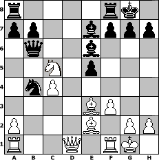 game notation in PGN-format [Event "Zum Donner-"Wetter"-Open"] [Site "www.myChess.de"] [Date "2016.06.10"] [Round "1"] [White "kalle"] [Black "Helmut48"] [ECO "B59"] [WhitemyELO "1581"] [BlackmyELO "2016"] [Result "0-1"] [TimeControl "10/2592000"] [WhiteDays "44"] [BlackDays "59"] [MyChessNo "103839"] 1. e4 c5 2. Nf3 d6 3. d4 cxd4 4. Nxd4 Nf6 5. Nc3 Nc6 6. Be2 e5 7. Nb3 Be7 8. Be3 Be6 9. O-O O-O 10. f3 d5 11. exd5 Nxd5 12. Nxd5 Bxd5 13. c4 Be6 14. Nc5 Qb6 15. b4 Nxb4 0-1 position notation in FEN-format r4rk1/pp2bppp/1q2b3/2N1p3/1nP5/4BP2/P3B1PP/R2Q1RK1 - - - 0 16 Captured white pieces: ![]() ![]() ![]() ![]() ![]() ![]() ![]() ![]() ![]() ![]() ![]() ![]() ![]() ![]() ![]() Captured black pieces: ![]() ![]() ![]() ![]() ![]() ![]() ![]() ![]() ![]() ![]() ![]() ![]() ![]() ![]() ![]() Click on a captured piece in order to display the desired move!