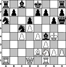 game notation in PGN-format [Event ""Gehirn Jogging A""] [Site "www.myChess.de"] [Date "2010.04.28"] [Round "1"] [White "bluescreenlover"] [Black "BobbyF4"] [ECO "A56"] [WhitemyELO "1288"] [BlackmyELO "1523"] [Result "0-1"] [TimeControl "10/1728000"] [WhiteDays "15"] [BlackDays "17"] [MyChessNo "65111"] 1. d4 Nf6 2. c4 c5 3. d5 Ne4 4. Be3 Qa5+ 5. Nd2 g6 6. Bxc5 Nxc5 7. f3 Bg7 8. e4 Bxb2 9. Rb1 Bc3 10. Be2 Qxa2 11. Nh3 Bxd2+ 12. Kf2 Nba6 13. Ra1 Qb2 14. Rf1 Qd4+ 15. Kg3 Qe3 16. Nf2 Qf4+ 17. Kh3 Qh6+ 18. Kg3 Bf4+ 19. Kg4 d6# 0-1 position notation in FEN-format r1b1k2r/pp2pp1p/n2p2pq/2nP4/2P1PbK1/5P2/4BNPP/R2Q1R2 - kq - 0 20 Captured white pieces: Captured black pieces: Click on a captured piece in order to display the desired move!
