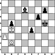 game notation in PGN-format [Event "Schon wieder."] [Site "www.myChess.de"] [Date "2017.10.12"] [Round "2"] [White "Joschi"] [Black "alibengali"] [ECO "D00"] [WhitemyELO "1578"] [BlackmyELO "1661"] [Result "0-1"] [TimeControl "10/2592000"] [WhiteDays "150"] [BlackDays "140"] [MyChessNo "109924"] 1. d4 d5 2. e4 dxe4 3. Nc3 Nf6 4. f3 exf3 5. Qxf3 a6 6. Be3 e6 7. O-O-O c6 8. Be2 Qa5 9. Nh3 h6 10. a3 Bxa3 11. bxa3 Qxc3 12. Bf4 Qxf3 13. Bxf3 O-O 14. Rhe1 Nbd7 15. Bd6 Re8 16. Nf2 Nb6 17. Nd3 Bd7 18. Nc5 Bc8 19. Bc7 Nbd5 20. Be5 b6 21. Ne4 Nxe4 22. Bxe4 Bb7 23. c4 Nc3 24. Rd3 Nxe4 25. Rxe4 c5 26. Re2 Red8 27. Kc2 cxd4 28. Rxd4 Rxd4 29. Bxd4 Rc8 30. Kb3 b5 31. cxb5 Bd5+ 32. Kb2 axb5 33. h3 Rc4 34. Bc3 f6 35. g4 Kf7 36. Rd2 Kg6 37. Kb3 Rd4+ 38. Kc2 Rxd2+ 39. Kxd2 Bg2 40. h4 Bh3 41. g5 hxg5 42. hxg5 Kxg5 43. Bb2 e5 44. Kc3 Bd7 45. Kb4 e4 0-1 position notation in FEN-format 8/3b2p1/5p2/1p4k1/1K2p3/P7/1B6/8 - - - 0 46 Captured white pieces: Captured black pieces: Click on a captured piece in order to display the desired move!