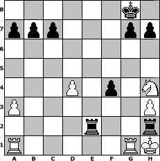 game notation in PGN-format [Event "dezember turnier"] [Site "www.myChess.de"] [Date "2005.12.05"] [Round "1"] [White "rikilatic"] [Black "Juliette2103"] [ECO "C20"] [WhitemyELO "1619"] [BlackmyELO "1968"] [Result "0-1"] [TimeControl "10/2592000"] [WhiteDays "111"] [BlackDays "110"] [MyChessNo "20344"] 1. e4 e5 2. Qh5 Nf6 3. Qxe5+ Be7 4. Bc4 Nc6 5. Qf4 d5 6. exd5 Nb4 7. Bb5+ Bd7 8. Bd3 Nxd3+ 9. cxd3 Nxd5 10. Qd4 Nb4 11. Na3 O-O 12. Nf3 Bc5 13. Qxc5 Nxd3+ 14. Kf1 Nxc5 15. d4 Nd3 16. Nc4 Bb5 17. b3 Qd5 18. Be3 Bxc4 19. bxc4 Qxc4 20. Kg1 f5 21. h3 f4 22. Bd2 Rae8 23. a3 Re2 24. Be1 Rfe8 25. Kh2 Nxe1 26. Nxe1 Rxf2 27. Nf3 Ree2 28. Nh4 Qc3 29. Rhg1 Qg3+ 30. Kh1 Qxh3+ 31. gxh3 Rh2# 0-1 position notation in FEN-format 6k1/ppp3pp/8/8/3P1p1N/P6P/4r2r/R5RK - - - 1 32 Captured white pieces: Captured black pieces: Click on a captured piece in order to display the desired move!