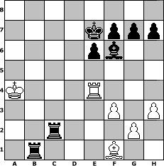 game notation in PGN-format [Event "Munich South Central"] [Site "www.myChess.de"] [Date "2010.10.19"] [Round "2"] [White "Zargoz"] [Black "Gauss1233"] [ECO "B01"] [WhitemyELO "1403"] [BlackmyELO "1492"] [Result "0-1"] [TimeControl "10/864000"] [WhiteDays "00"] [BlackDays "38"] [MyChessNo "69125"] 1. e4 d5 2. exd5 Qxd5 3. Nc3 Qd6 4. Nb5 Qe5+ 5. Qe2 Qc5 6. d4 Qc6 7. Bf4 Na6 8. Nf3 Nf6 9. O-O-O e6 10. d5 Nxd5 11. Rxd5 Qxd5 12. Nxc7+ Nxc7 13. Bxc7 Qxa2 14. Qb5+ Bd7 15. Qxb7 Qd5 16. Ba6 Bc6 17. Qb3 Qxb3 18. cxb3 Bc5 19. Ne5 Bd5 20. Bb5+ Ke7 21. f3 Rac8 22. Bc4 Rxc7 23. Bxd5 Bd4+ 24. Bc4 Bxe5 25. h3 a5 26. Kc2 Rd8 27. Ra1 Rc5 28. Re1 Bf6 29. Re3 a4 30. Re4 axb3+ 31. Kxb3 Rb8+ 32. Ka4 Rxb2 33. Be2 Rcc2 34. Bf1 Rb1 0-1 position notation in FEN-format 8/4kppp/4pb2/8/K3R3/5P1P/2r3P1/1r3B2 - - - 4 35 Captured white pieces: Captured black pieces: Click on a captured piece in order to display the desired move!