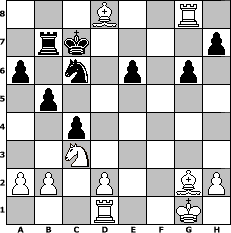 game notation in PGN-format [Event "Februar 2017"] [Site "www.myChess.de"] [Date "2017.02.05"] [Round "1"] [White "Steffi"] [Black "lotchi"] [ECO "D06"] [WhitemyELO "1604"] [BlackmyELO "1185"] [Result "1-0"] [TimeControl "10/1728000"] [WhiteDays "58"] [BlackDays "60"] [MyChessNo "106806"] 1. d4 d5 2. c4 c5 3. dxc5 dxc4 4. Qxd8+ Kxd8 5. e4 b5 6. Nf3 Bg4 7. Ne5 Nf6 8. Nxf7+ Kc8 9. Nxh8 Nxe4 10. f3 Bxf3 11. gxf3 Nxc5 12. Bg2 a6 13. O-O Ra7 14. Nf7 e6 15. Ne5 Bd6 16. f4 Ncd7 17. Nc3 Bxe5 18. fxe5 Nxe5 19. Rf8+ Kd7 20. Rxb8 Nc6 21. Rg8 g6 22. Bg5 Rb7 23. Rd1+ Kc7 24. Bd8+ 1-0 position notation in FEN-format 3B2R1/1rk4p/p1n1p1p1/1p6/2p5/2N5/PP1P2BP/3R2K1 - - - 5 24 Captured white pieces: Captured black pieces: Click on a captured piece in order to display the desired move!