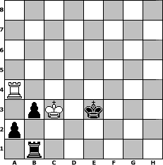 game notation in PGN-format [Event "1. HSF-Clubmeisterschaft, Vorrunde A"] [Site "www.myChess.de"] [Date "2010.09.01"] [Round "1"] [White "beowulf"] [Black "lotchi"] [ECO "D08"] [WhitemyELO "1373"] [BlackmyELO "1331"] [Result "0-1"] [TimeControl "10/2592000"] [WhiteDays "30"] [BlackDays "30"] [MyChessNo "67994"] 1. d4 d5 2. c4 e5 3. dxe5 dxc4 4. Qxd8+ Kxd8 5. Bg5+ f6 6. exf6 Nxf6 7. e4 b5 8. e5 h6 9. Bh4 g5 10. Bg3 Nd5 11. Nc3 Nxc3 12. bxc3 Be6 13. Rd1+ Nd7 14. Ne2 Bg7 15. Nd4 Ke7 16. Nc6+ Ke8 17. f4 gxf4 18. Bxf4 Nc5 19. Be2 Nd3+ 20. Bxd3 cxd3 21. Rxd3 Bxa2 22. e6 Bc4 23. Rg3 Bf6 24. Kd2 Bd5 25. Nd4 Bxd4 26. cxd4 Rf8 27. Be3 a5 28. Rc1 Bxe6 29. Rxc7 Rg8 30. Rxg8+ Bxg8 31. Bxh6 Bd5 32. g4 a4 33. Rc5 Bc4 34. Re5+ Kf7 35. Rf5+ Kg6 36. Bf8 Bf7 37. Bb4 Rb8 38. h4 Bc4 39. h5+ Kh6 40. Rf6+ Kg5 41. Rg6+ Kh4 42. h6 Rh8 43. Kc2 Bf7 44. Rg7 Be6 45. g5 Bf5+ 46. Kb2 Kh5 47. d5 Bg6 48. Be7 b4 49. Bf6 Rc8 50. Ra7 Rc2+ 51. Ka1 Rc1+ 52. Ka2 Rc2+ 53. Bb2 a3 54. h7 Rxb2+ 55. Ka1 Bxh7 56. Rxh7+ Kxg5 57. Ra7 Rd2 58. Ra5 Rd1+ 59. Ka2 Kf5 60. Kb3 Rd4 61. Rb5 Ke5 62. Ka2 Rd2+ 63. Kb3 Rb2+ 64. Kc4 a2 65. Ra5 b3 66. Kc3 Rb1 67. d6+ Kxd6 68. Ra6+ Kd5 69. Ra5+ Ke4 70. Ra4+ Ke3 0-1 position notation in FEN-format 8/8/8/8/R7/1pK1k3/p7/1r6 - - - 6 71 Captured white pieces: ![]() ![]() ![]() ![]() ![]() ![]() ![]() ![]() ![]() ![]() ![]() ![]() ![]() ![]() ![]() Captured black pieces: ![]() ![]() ![]() ![]() ![]() ![]() ![]() ![]() ![]() ![]() ![]() ![]() ![]() ![]() ![]() Click on a captured piece in order to display the desired move!