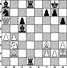 game notation in PGN-format [Event "Windecker Herbst-Open"] [Site "www.myChess.de"] [Date "2014.10.08"] [Round "1"] [White "Naunhofer"] [Black "UPS"] [ECO "D07"] [WhitemyELO "1594"] [BlackmyELO "1650"] [Result "1-0"] [TimeControl "10/1728000"] [WhiteDays "20"] [BlackDays "11"] [MyChessNo "96213"] 1. d4 d5 2. c4 Nc6 3. Nc3 e6 4. e3 Nf6 5. Nf3 Be7 6. Be2 O-O 7. O-O a6 8. a3 dxc4 9. Bxc4 b6 10. b4 Bb7 11. Bb2 Na7 12. Rc1 Rc8 13. Be2 h6 14. Ne5 c6 15. Bf3 Qd6 16. Qb3 Rc7 17. Nc4 Qd8 18. Nxb6 Nd5 19. Nc4 Nxc3 20. Rxc3 Bf6 21. Na5 Ba8 22. Rfc1 Qd7 23. R3c2 Rfc8 24. Qd3 e5 25. Rc5 exd4 26. exd4 Nb5 27. Nb3 Rd8 28. Rd1 Qd6 29. a4 Na7 30. Qxa6 Rcd7 31. Nd2 Bxd4 32. Nb3 Bxc5 33. Rxd6 Rxd6 34. h3 Rd1+ 35. Kh2 1-0 position notation in FEN-format b2r2k1/n4pp1/Q1p4p/2b5/PP6/1N3B1P/1B3PPK/3r4 - - - 2 35 Captured white pieces: Captured black pieces: Click on a captured piece in order to display the desired move!