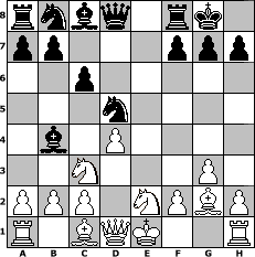 game notation in PGN-format [Event "5.) PEPSTEIN - Cup 2009"] [Site "www.myChess.de"] [Date "2009.09.03"] [Round "2"] [White "johnnschy"] [Black "Helmut48"] [ECO "A20"] [WhitemyELO "1772"] [BlackmyELO "1758"] [Result "0-1"] [TimeControl "10/1728000"] [WhiteDays "00"] [BlackDays "20"] [MyChessNo "58795"] 1. c4 e5 2. g3 Nf6 3. Bg2 c6 4. Nc3 Bc5 5. e3 O-O 6. d4 exd4 7. exd4 Bb4 8. Nge2 d5 9. cxd5 Nxd5 0-1 position notation in FEN-format rnbq1rk1/pp3ppp/2p5/3n4/1b1P4/2N3P1/PPP1NPBP/R1BQK2R - KQ - 0 10 Captured white pieces: ![]() ![]() ![]() ![]() ![]() ![]() ![]() ![]() ![]() ![]() ![]() ![]() ![]() ![]() ![]() Captured black pieces: ![]() ![]() ![]() ![]() ![]() ![]() ![]() ![]() ![]() ![]() ![]() ![]() ![]() ![]() ![]() Click on a captured piece in order to display the desired move!