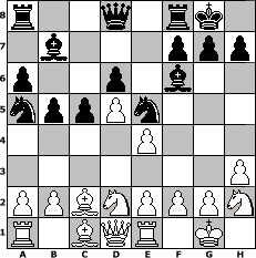 game notation in PGN-format [Event "Bremer Schl"] [Site "www.myChess.de"] [Date "2010.04.10"] [Round "1"] [White "dbuse"] [Black "larlinde"] [ECO "C96"] [WhitemyELO "2104"] [BlackmyELO "2177"] [Result "1/2-1/2"] [TimeControl "10/3456000"] [WhiteDays "59"] [BlackDays "64"] [MyChessNo "64732"] 1. e4 e5 2. Nf3 Nc6 3. Bb5 a6 4. Ba4 Nf6 5. O-O Be7 6. Re1 b5 7. Bb3 d6 8. c3 O-O 9. h3 Na5 10. Bc2 c5 11. d4 Nd7 12. Nbd2 exd4 13. cxd4 Bb7 14. d5 Bf6 15. Nh2 Ne5 1/2-1/2 position notation in FEN-format r2q1rk1/1b3ppp/p2p1b2/nppPn3/4P3/7P/PPBNPPPN/R1BQR1K1 - - - 3 16 Captured white pieces: Captured black pieces: Click on a captured piece in order to display the desired move!