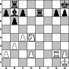 game notation in PGN-format [Event "Pfingst -Turnier"] [Site "www.myChess.de"] [Date "2009.05.30"] [Round "1"] [White "Caligula"] [Black "Ostseeboy"] [ECO "A80"] [WhitemyELO "1264"] [BlackmyELO "1261"] [Result "0-1"] [TimeControl "10/2592000"] [WhiteDays "87"] [BlackDays "90"] [MyChessNo "56163"] 1. d4 f5 2. Nf3 Nf6 3. e3 e6 4. Bd3 Be7 5. c4 O-O 6. Nc3 Nc6 7. O-O b6 8. e4 fxe4 9. Nxe4 Nxe4 10. Bxe4 Rb8 11. Bxc6 dxc6 12. Ne5 Bb7 13. Nd3 Ba6 14. b3 Qxd4 15. Bb2 Qe4 16. Re1 Qg6 17. Ne5 Qf5 18. Nxc6 Qxf2+ 19. Kh1 Bb7 20. Qg4 Bf6 21. Qxe6+ Kh8 22. Bxf6 Qxf6 23. Qxf6 Rxf6 24. Nd4 Rf2 25. Re7 Rxg2 26. Rg1 Re2+ 27. Rg2 Rxe7 0-1 position notation in FEN-format 1r5k/pbp1r1pp/1p6/8/2PN4/1P6/P2P2RP/7K - - - 0 28 Captured white pieces: ![]() ![]() ![]() ![]() ![]() ![]() ![]() ![]() ![]() ![]() ![]() ![]() ![]() ![]() ![]() Captured black pieces: ![]() ![]() ![]() ![]() ![]() ![]() ![]() ![]() ![]() ![]() ![]() ![]() ![]() ![]() ![]() Click on a captured piece in order to display the desired move!