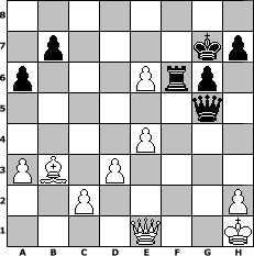 game notation in PGN-format [Event "Internetmeisterschaft Sfr Heimersheim 2008 Runde 2"] [Site "www.myChess.de"] [Date "2008.07.06"] [Round "1"] [White "Ralphi@"] [Black "paula"] [ECO "B23"] [WhitemyELO "1500"] [BlackmyELO "1712"] [Result "1/2-1/2"] [TimeControl "10/2592000"] [WhiteDays "88"] [BlackDays "90"] [MyChessNo "46115"] 1. e4 c5 2. Nc3 Nc6 3. Bc4 e6 4. d3 a6 5. a3 g6 6. Nge2 Bg7 7. Be3 Nd4 8. O-O Ne7 9. f4 d5 10. Ba2 Nxe2+ 11. Nxe2 Bxb2 12. Bxc5 Bxa1 13. Qxa1 O-O 14. Bd4 f5 15. Ng3 Nc6 16. Bh8 d4 17. Be5 Nxe5 18. fxe5 f4 19. Ne2 f3 20. Nxd4 fxg2 21. Rxf8+ Qxf8 22. Nxe6 Bxe6 23. Bxe6+ Kg7 24. Kxg2 Qc5 25. Bb3 Rf8 26. e6+ Rf6 27. Qe1 Qg5+ 28. Kh1 1/2-1/2 position notation in FEN-format 8/1p4kp/p3Prp1/6q1/4P3/PB1P4/2P4P/4Q2K - - - 4 28 Captured white pieces: ![]() ![]() ![]() ![]() ![]() ![]() ![]() ![]() ![]() ![]() ![]() ![]() ![]() ![]() ![]() Captured black pieces: ![]() ![]() ![]() ![]() ![]() ![]() ![]() ![]() ![]() ![]() ![]() ![]() ![]() ![]() ![]() Click on a captured piece in order to display the desired move!