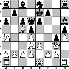 game notation in PGN-format [Event "Schach am laufenden Band"] [Site "www.myChess.de"] [Date "2017.10.17"] [Round "1"] [White "pepo47"] [Black "Rabenvogel"] [ECO "D01"] [WhitemyELO "2036"] [BlackmyELO "1548"] [Result "1-0"] [TimeControl "10/1728000"] [WhiteDays "18"] [BlackDays "19"] [MyChessNo "109977"] 1. d4 d5 2. Nc3 Nf6 3. Nf3 h6 4. Bf4 a6 5. e3 e6 6. Ne5 g5 7. Bg3 Nbd7 8. h4 Bg7 9. Qf3 Nxe5 10. Bxe5 g4 11. Qf4 c6 12. Be2 h5 13. Bd3 Ke7 14. Bc7 Qd7 15. Na4 Ne8 16. Bb6 Qd6 17. Bc5 Bh6 18. Qg3 1-0 position notation in FEN-format r1b1n2r/1p2kp2/p1pqp2b/2Bp3p/N2P2pP/3BP1Q1/PPPP1PP1/R3K2R - KQ - 11 18 Captured white pieces: ![]() ![]() ![]() ![]() ![]() ![]() ![]() ![]() ![]() ![]() ![]() ![]() ![]() ![]() ![]() Captured black pieces: ![]() ![]() ![]() ![]() ![]() ![]() ![]() ![]() ![]() ![]() ![]() ![]() ![]() ![]() ![]() Click on a captured piece in order to display the desired move!