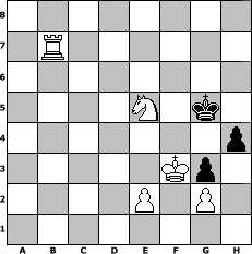 game notation in PGN-format [Event "Impfen ist Pflicht :-)"] [Site "www.myChess.de"] [Date "2021.04.29"] [Round "1"] [White "kalle"] [Black "Mynona"] [ECO "C51"] [WhitemyELO "1610"] [BlackmyELO "1324"] [Result "1-0"] [TimeControl "10/2592000"] [WhiteDays "150"] [BlackDays "150"] [MyChessNo "122033"] 1. e4 e5 2. Nf3 Nc6 3. Bc4 Bc5 4. b4 Bxb4 5. c3 Bc5 6. O-O d6 7. d4 exd4 8. cxd4 Bb6 9. Bb2 Nf6 10. Ng5 O-O 11. Na3 Qe7 12. e5 dxe5 13. dxe5 Nxe5 14. Bb3 Nfg4 15. Nf3 Nxf3+ 16. Qxf3 Nf6 17. Nc4 Be6 18. Rfe1 Rad8 19. Qxb7 Qc5 20. Ne3 Bd5 21. Qa6 Qa5 22. Qxa5 Bxa5 23. Bxf6 Bxe1 24. Bxd8 Bxf2+ 25. Kxf2 Bxb3 26. axb3 Rxd8 27. Rxa7 c5 28. Rc7 Rb8 29. Rxc5 g6 30. Rc3 h5 31. Nc2 Kg7 32. b4 f5 33. Rb3 Kh6 34. b5 g5 35. b6 g4 36. b7 h4 37. Nd4 f4 38. Nc6 Rxb7 39. Rxb7 g3+ 40. hxg3 fxg3+ 41. Kf3 Kg5 42. Ne5 1-0 position notation in FEN-format 8/1R6/8/4N1k1/7p/5Kp1/4P1P1/8 - - - 3 42 Captured white pieces: Captured black pieces: Click on a captured piece in order to display the desired move!
