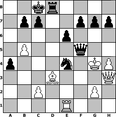 game notation in PGN-format [Event "Amateur´s Mind"] [Site "www.myChess.de"] [Date "2025.03.20"] [Round "1"] [White "Rotstift10"] [Black "Leon"] [ECO "B01"] [WhitemyELO "1678"] [BlackmyELO "2022"] [Result "0-1"] [TimeControl "10/2592000"] [WhiteDays "27"] [BlackDays "30"] [MyChessNo "133116"] 1. e4 d5 2. exd5 Qxd5 3. Nc3 Qd7 4. Nf3 e6 5. d4 Bb4 6. a3 Ba5 7. Ne5 Qe7 8. b4 Bb6 9. h4 Bd7 10. Nxd7 Nxd7 11. Bb2 a5 12. b5 O-O-O 13. Na4 Nh6 14. Nxb6+ Nxb6 15. Qh5 Rd5 16. Qe2 Nf5 17. Qg4 Na4 18. O-O-O Rhd8 19. Qh3 Nxd4 20. Bxd4 Rxd4 21. Be2 Qf6 22. Rd3 Rxd3 23. Bxd3 Qc3 24. Rd1 Qxa3+ 25. Kd2 Qb4+ 26. Kc1 Nc3 27. Re1 Na2+ 28. Kd1 Nc3+ 29. Kc1 a4 30. Kd2 Ne4+ 31. Ke2 Qd2+ 32. Kf3 Qxf2+ 33. Kg4 Qf5# 0-1 position notation in FEN-format 2kr4/1pp2ppp/4p3/1P3q2/p3n1KP/3B3Q/2P3P1/4R3 - - - 2 34 Captured white pieces: Captured black pieces: Click on a captured piece in order to display the desired move!