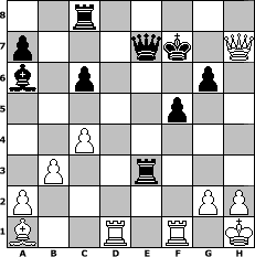 game notation in PGN-format [Event "MLN Winterturnier 2013"] [Site "www.myChess.de"] [Date "2013.12.01"] [Round "1"] [White "mattse"] [Black "martinus"] [ECO "B30"] [WhitemyELO "1784"] [BlackmyELO "1769"] [Result "1-0"] [TimeControl "10/2592000"] [WhiteDays "30"] [BlackDays "28"] [MyChessNo "91418"] 1. e4 c5 2. Nf3 Nc6 3. Nc3 d6 4. d4 cxd4 5. Nxd4 e5 6. Nxc6 bxc6 7. Be2 Nf6 8. O-O Be7 9. Qd3 O-O 10. Qg3 g6 11. Bh6 Re8 12. b3 d5 13. Rad1 d4 14. f4 Bd6 15. fxe5 Bxe5 16. Bf4 d3 17. Bxe5 Qb6+ 18. Kh1 dxe2 19. Nxe2 Nxe4 20. Qf4 f5 21. Ba1 Qc5 22. Ng3 Nxg3+ 23. Qxg3 Ba6 24. c4 Re3 25. Qh4 Qe7 26. Qd4 Rc8 27. Qh8+ Kf7 28. Qxh7+ 1-0 position notation in FEN-format 2r5/p3qk1Q/b1p3p1/5p2/2P5/1P2r3/P5PP/B2R1R1K - - - 0 28 Captured white pieces: Captured black pieces: Click on a captured piece in order to display the desired move!