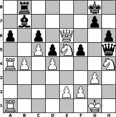 game notation in PGN-format [Event "Oktoberfest 2007"] [Site "www.myChess.de"] [Date "2007.10.05"] [Round "1"] [White "lure"] [Black "Macho"] [ECO "B12"] [WhitemyELO "1536"] [BlackmyELO "1378"] [Result "1-0"] [TimeControl "10/2592000"] [WhiteDays "101"] [BlackDays "000"] [MyChessNo "38664"] 1. e4 c6 2. d4 e6 3. c4 Bb4+ 4. Bd2 Bxd2+ 5. Nxd2 Ne7 6. Ngf3 d5 7. c5 O-O 8. e5 b5 9. Bd3 a6 10. b4 f5 11. a4 bxa4 12. Rxa4 Ng6 13. g3 f4 14. Qa1 fxg3 15. hxg3 Qe8 16. Qb1 h6 17. Bxg6 Qe7 18. Bh5 Nd7 19. Qg6 Rf5 20. Qg4 Nf6 21. exf6 Qxf6 22. O-O Bb7 23. Bg6 Bc8 24. Bxf5 exf5 25. Qf4 Be6 26. Rfa1 Bc8 27. Qe5 Qg6 28. Nh4 Qf7 29. Qd6 Bb7 30. Ndf3 Re8 31. Ne5 Qh5 32. Qd7 Rb8 33. Qe6+ 1-0 position notation in FEN-format 1r4k1/1b4p1/p1p1Q2p/2PpNp1q/RP1P3N/6P1/4PP2/R5K1 - - - 17 33 Captured white pieces: Captured black pieces: Click on a captured piece in order to display the desired move!