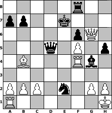 game notation in PGN-format [Event "fr"] [Site "www.myChess.de"] [Date "2011.10.14"] [Round "1"] [White "Erich"] [Black "martinus"] [ECO "B32"] [WhitemyELO "1963"] [BlackmyELO "1751"] [Result "1-0"] [TimeControl "10/1728000"] [WhiteDays "20"] [BlackDays "18"] [MyChessNo "76836"] 1. e4 c5 2. Nf3 Nc6 3. d4 cxd4 4. Nxd4 e5 5. Nf3 Nf6 6. Bd3 d5 7. exd5 Qxd5 8. O-O Bd6 9. Nc3 Qa5 10. Bd2 O-O 11. Ne4 Qd8 12. Qe1 Bg4 13. Nfg5 h6 14. Nxf6+ gxf6 15. Ne4 f5 16. Nxd6 Qxd6 17. f3 e4 18. fxe4 Rae8 19. Qh4 h5 20. exf5 f6 21. Rf2 Nd4 22. Kh1 Qd5 23. Rf4 Kg7 24. Bc3 Re2 25. Bxe2 Nxe2 26. Qg5+ Kf7 27. Qg6+ Ke7 28. Bb4+ 1-0 position notation in FEN-format 5r2/pp2k3/5pQ1/3q1P1p/1B3Rb1/8/PPP1n1PP/R6K - - - 5 28 Captured white pieces: Captured black pieces: Click on a captured piece in order to display the desired move!