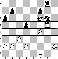 game notation in PGN-format [Event "CAISSA.COM IS DEAD TO ME!"] [Site "www.myChess.de"] [Date "2020.03.28"] [Round "1"] [White "martinus"] [Black "UPS"] [ECO "D02"] [WhitemyELO "1575"] [BlackmyELO "1664"] [Result "1-0"] [TimeControl "10/2592000"] [WhiteDays "30"] [BlackDays "00"] [MyChessNo "117717"] 1. d4 d5 2. Nf3 Nf6 3. Bf4 e6 4. Nc3 Nc6 5. Nb5 Bd6 6. Nxd6+ cxd6 7. e3 O-O 8. Bd3 h6 9. O-O a6 10. Re1 Nb4 11. Be2 Qc7 12. c3 Nc6 13. Bg3 e5 14. Bh4 Be6 15. Bxf6 gxf6 16. Nh4 Ne7 17. Bg4 Qd7 18. Bxe6 Qxe6 19. Qh5 Kh7 20. f4 f5 21. dxe5 dxe5 22. fxe5 Qxe5 23. Nf3 Qf6 24. Rf1 Rg8 25. h4 Qg6 26. Ng5+ Kg7 27. Qxg6+ Kxg6 28. Nf3 Kf6 29. Nd4 Rg4 30. Nf3 Rag8 31. Rf2 Ng6 32. Raf1 f4 33. Nh2 Rxh4 34. g3 Rh3 35. Rg2 Kf5 36. exf4 h5 37. g4+ hxg4 38. Rxg4 Rxh2 39. Rg5+ Kf6 40. Kxh2 1-0 position notation in FEN-format 6r1/1p3p2/p4kn1/3p2R1/5P2/2P5/PP1P3K/5R2 - - - 0 40 Captured white pieces: Captured black pieces: Click on a captured piece in order to display the desired move!