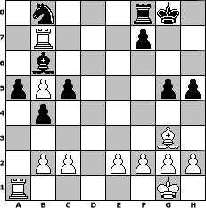 game notation in PGN-format [Event "Wargames-kill the King II"] [Site "www.myChess.de"] [Date "2005.11.18"] [Round "1"] [White "Baehr008"] [Black "MichaelKnopf"] [ECO "B01"] [WhitemyELO "1979"] [BlackmyELO "1642"] [Result "1-0"] [TimeControl "10/864000"] [WhiteDays "09"] [BlackDays "10"] [MyChessNo "19758"] 1. e4 d5 2. exd5 Qxd5 3. Nc3 Qd8 4. Bc4 e6 5. Nf3 c6 6. O-O b5 7. Bb3 a5 8. a4 b4 9. Ne4 h6 10. d4 Nf6 11. Nxf6+ Qxf6 12. Re1 Be7 13. Ne5 c5 14. d5 Ra6 15. Ng4 Qf5 16. Bc4 Rd6 17. Bd3 Qxd5 18. Bf4 Rb6 19. Bb5+ Bd7 20. Qxd5 exd5 21. Ne3 O-O 22. Nxd5 Bd8 23. Nxb6 Bxb6 24. Re7 Bxb5 25. axb5 g5 26. Bg3 h5 27. Rb7 1-0 position notation in FEN-format 1n3rk1/1R3p2/1b6/pPp3pp/1p6/6B1/1PP1PPPP/R5K1 - - - 1 27 Captured white pieces: ![]() ![]() ![]() ![]() ![]() ![]() ![]() ![]() ![]() ![]() ![]() ![]() ![]() ![]() ![]() Captured black pieces: ![]() ![]() ![]() ![]() ![]() ![]() ![]() ![]() ![]() ![]() ![]() ![]() ![]() ![]() ![]() Click on a captured piece in order to display the desired move!