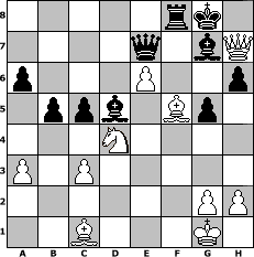 game notation in PGN-format [Event "Herbstturnier 2025"] [Site "www.myChess.de"] [Date "2025.09.16"] [Round "1"] [White "alibengali"] [Black "Achimkogge"] [ECO "C30"] [WhitemyELO "1722"] [BlackmyELO "1215"] [Result "1-0"] [TimeControl "10/1728000"] [WhiteDays "80"] [BlackDays "80"] [MyChessNo "133668"] 1. e4 e5 2. f4 Nc6 3. Nf3 exf4 4. d4 g5 5. Bc4 Bb4+ 6. c3 Be7 7. O-O Nh6 8. b4 a6 9. d5 Nb8 10. Bb2 Ng4 11. Qd4 Bf6 12. e5 Bg7 13. Qe4 Ne3 14. Re1 O-O 15. Bd3 f5 16. Qd4 d6 17. Rxe3 fxe3 18. Qxe3 h6 19. e6 Qe7 20. Nbd2 b6 21. Nd4 Bb7 22. Nxf5 Rxf5 23. Bxf5 Bxd5 24. Nf3 Nc6 25. a3 b5 26. Nd4 Ne5 27. Re1 Nc4 28. Qe2 Rf8 29. Qh5 Ne5 30. Bc1 c5 31. bxc5 dxc5 32. Rxe5 Bxe5 33. Qg6+ Bg7 34. Qh7# 1-0 position notation in FEN-format 5rk1/4q1bQ/p3P2p/1ppb1Bp1/3N4/P1P5/6PP/2B3K1 - - - 3 34 Captured white pieces: Captured black pieces: Click on a captured piece in order to display the desired move!