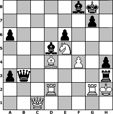 game notation in PGN-format [Event "Die Eisenbahner sind wieder da!!"] [Site "www.myChess.de"] [Date "2016.09.09"] [Round "1"] [White "muetoe"] [Black "Peterlie77 (C)"] [Variant "Fischerrandom"] [SetUp "1"] [FEN "bnnrqbkr/pppppppp/8/8/8/8/PPPPPPPP/BNNRQBKR w KQkq - 0 1"] [WhitemyELO "1966"] [BlackmyELO "2126"] [Result "0-1"] [TimeControl "10/1728000"] [WhiteDays "59"] [BlackDays "60"] [MyChessNo "104855"] 1. e4 b6 2. d4 d5 3. e5 e6 4. Bd3 c5 5. O-O c4 6. Be2 Nc6 7. b3 b5 8. f4 N8e7 9. c3 h5 10. a4 a6 11. Bb2 bxa4 12. bxc4 Rb8 13. Rd2 dxc4 14. Na3 Na5 15. Nxc4 Nxc4 16. Bxc4 h4 17. h3 Nf5 18. Bd3 a3 19. Ba1 Rh6 20. Na2 Rg6 21. c4 Qc8 22. d5 exd5 23. cxd5 Rb3 24. Nc1 Rxd3 25. Nxd3 Bxd5 26. Qc1 Qb7 27. e6 fxe6 28. Rff2 Ne3 29. Bd4 Nxg2 30. Ne5 Rg3 31. Kh2 Qb3 32. Rxg2 Rxh3+ 0-1 position notation in FEN-format 5bk1/6p1/p3p3/3bN3/3B1P1p/pq5r/3R2RK/2Q5 - - - 0 33 Captured white pieces: Captured black pieces: Click on a captured piece in order to display the desired move!