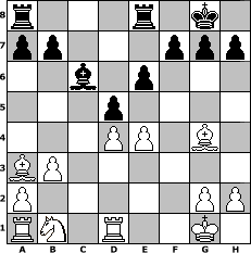 | game notation in PGN-format [Event "Mal was anderes !"] [Site "www.myChess.de"] [Date "2010.03.30"] [Round "1"] [White "Jonas84"] [Black "Haki"] [ECO "A00"] [WhitemyELO "1404"] [BlackmyELO "1291"] [Result "0-1"] [TimeControl "10/2592000"] [WhiteDays "88"] [BlackDays "90"] [MyChessNo "64403"] 1. Nc3 c5 2. Nf3 e6 3. e4 Nc6 4. Bc4 Nf6 5. d4 cxd4 6. Nxd4 Bc5 7. Nf3 Qb6 8. O-O O-O 9. Qe2 Nd4 10. Nxd4 Bxd4 11. Na4 Qd6 12. Rd1 Qe5 13. c3 Nxe4 14. cxd4 Qf5 15. Bd3 d5 16. f3 Qh5 17. fxe4 Qxe2 18. Bxe2 Bd7 19. Bg4 Bxa4 20. b3 Bc6 21. Ba3 Rfe8 0-1 position notation in FEN-format r3r1k1/pp3ppp/2b1p3/3p4/3PP1B1/BP6/P5PP/RN1R2K1 - - - 3 22 Captured white pieces: Captured black pieces: Click on a captured piece in order to display the desired move!