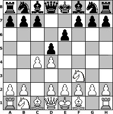 game notation in PGN-format [Event "Die Weinlese"] [Site "www.myChess.de"] [Date "2016.09.01"] [Round "1"] [White "deepsabel"] [Black "woern63"] [ECO "D30"] [WhitemyELO "2044"] [BlackmyELO "2006"] [Result "1-0"] [TimeControl "10/1728000"] [WhiteDays "20"] [BlackDays "06"] [MyChessNo "104662"] 1. d4 d5 2. c4 e6 3. Nf3 1-0 position notation in FEN-format rnbqkbnr/ppp2ppp/4p3/3p4/2PP4/5N2/PP1PPPPP/RNBQKB1R - KQkq - 1 3 Captured white pieces: Captured black pieces: Click on a captured piece in order to display the desired move!