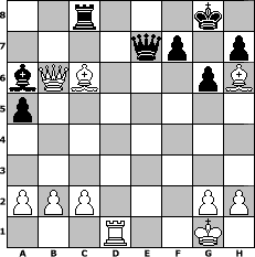 game notation in PGN-format [Event "5er2"] [Site "www.myChess.de"] [Date "2017.07.29"] [Round "1"] [White "spiderman"] [Black "sprinterde"] [ECO "A06"] [WhitemyELO "1780"] [BlackmyELO "1652"] [Result "1-0"] [TimeControl "10/3456000"] [WhiteDays "31"] [BlackDays "28"] [MyChessNo "108953"] 1. Nf3 d5 2. e3 Nf6 3. d4 e6 4. Nc3 Bb4 5. Bd2 O-O 6. Bd3 b6 7. O-O Nc6 8. Ne5 Nxe5 9. dxe5 Nd7 10. Qh5 g6 11. Qg4 Nxe5 12. Qxb4 a5 13. Qd4 Nc6 14. Qf4 e5 15. Qg3 e4 16. Bb5 Ne7 17. f3 c6 18. Be2 Nf5 19. Qf2 exf3 20. Bxf3 Nd6 21. e4 dxe4 22. Nxe4 Ba6 23. Rfd1 Nxe4 24. Bxe4 Qe7 25. Bxc6 Rad8 26. Bh6 Rxd1+ 27. Rxd1 Rc8 28. Qxb6 1-0 position notation in FEN-format 2r3k1/4qp1p/bQB3pB/p7/8/8/PPP3PP/3R2K1 - - - 0 28 Captured white pieces: Captured black pieces: Click on a captured piece in order to display the desired move!