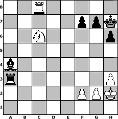 game notation in PGN-format [Event "Fr"] [Site "www.myChess.de"] [Date "2016.01.30"] [Round "2"] [White "Gauss1233"] [Black "borsti"] [ECO "D20"] [WhitemyELO "1415"] [BlackmyELO "1270"] [Result "1/2-1/2"] [TimeControl "10/2592000"] [WhiteDays "120"] [BlackDays "120"] [MyChessNo "102322"] 1. d4 d5 2. c4 dxc4 3. Nc3 Bf5 4. e4 Bg6 5. Bxc4 e6 6. Nf3 Bd6 7. a3 Ne7 8. Bg5 h6 9. Bxe7 Bxe7 10. O-O Nc6 11. d5 exd5 12. exd5 Na5 13. Bb5+ c6 14. dxc6 Nxc6 15. Qa4 O-O 16. Rad1 Qb6 17. Bxc6 Qxc6 18. Qxc6 bxc6 19. Rd7 Bf6 20. Rc7 Rfc8 21. Rxc8+ Rxc8 22. Rd1 Re8 23. h3 Bc2 24. Rd2 Bb3 25. Rd7 Re7 26. Rd8+ Kh7 27. Rc8 Bxc3 28. bxc3 Ba4 29. Nd4 Re1+ 30. Kh2 Rc1 31. Nxc6 Rxc3 32. Nxa7 Rxa3 33. Nc6 1/2-1/2 position notation in FEN-format 2R5/5ppk/2N4p/8/b7/r6P/5PPK/8 - - - 1 33 Captured white pieces: Captured black pieces: Click on a captured piece in order to display the desired move!