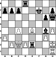 game notation in PGN-format [Event "April 2018"] [Site "www.myChess.de"] [Date "2018.04.11"] [Round "1"] [White "reisinger"] [Black "alibengali"] [ECO "D08"] [WhitemyELO "1459"] [BlackmyELO "1720"] [Result "0-1"] [TimeControl "10/1728000"] [WhiteDays "60"] [BlackDays "55"] [MyChessNo "111979"] 1. d4 d5 2. c4 e5 3. e3 exd4 4. exd4 Nf6 5. h3 Bb4+ 6. Nc3 O-O 7. Nf3 Re8+ 8. Be3 Ne4 9. Qc2 Ng3 10. fxg3 Rxe3+ 11. Kf2 Re8 12. Nxd5 Nc6 13. a3 Bd6 14. Bd3 g6 15. Rae1 Be6 16. Nf4 Bxf4 17. gxf4 Nxd4 18. Nxd4 Qxd4+ 19. Kg3 Rad8 20. Rd1 Qe3+ 21. Kh2 Qxf4+ 22. g3 Qh6 23. h4 Bg4 24. Rdf1 Re3 25. Rxf7 Kxf7 26. Be4 Re2+ 0-1 position notation in FEN-format 3r4/ppp2k1p/6pq/8/2P1B1bP/P5P1/1PQPr2K/7R - - - 2 27 Captured white pieces: Captured black pieces: Click on a captured piece in order to display the desired move!