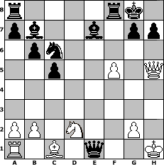 game notation in PGN-format [Event "Chess Cafe Open 2016 1"] [Site "www.myChess.de"] [Date "2016.11.02"] [Round "1"] [White "miu"] [Black "noma"] [ECO "D02"] [WhitemyELO "1537"] [BlackmyELO "1503"] [Result "0-1"] [TimeControl "10/2592000"] [WhiteDays "30"] [BlackDays "29"] [MyChessNo "105502"] 1. d4 d5 2. Nf3 e6 3. e3 Nf6 4. Bd3 c5 5. c3 b6 6. O-O Bb7 7. Re1 Be7 8. Nbd2 O-O 9. Nf1 Ne4 10. Ng3 f5 11. Nd2 Nc6 12. f3 Nxg3 13. hxg3 e5 14. e4 dxe4 15. fxe4 exd4 16. cxd4 Qxd4+ 17. Kh1 Qxd3 18. Qh5 Qxg3 19. exf5 Qxe1+ 0-1 position notation in FEN-format r4rk1/pb2b1pp/1pn5/2p2P1Q/8/8/PP1N2P1/R1B1q2K - - - 0 20 Captured white pieces: Captured black pieces: Click on a captured piece in order to display the desired move!