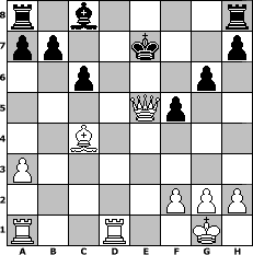 game notation in PGN-format [Event "Gothic 100"] [Site "www.myChess.de"] [Date "2005.08.23"] [Round "1"] [White "Juri"] [Black "Gno"] [ECO "C01"] [WhitemyELO "1193"] [BlackmyELO "1379"] [Result "1-0"] [TimeControl "10/2592000"] [WhiteDays "90"] [BlackDays "90"] [MyChessNo "16593"] 1. e4 e6 2. d4 d5 3. Be3 c6 4. e5 f6 5. Nf3 Be7 6. c4 Bb4+ 7. Nfd2 Nd7 8. a3 Bxd2+ 9. Nxd2 fxe5 10. dxe5 Nxe5 11. Qh5+ Nf7 12. Bd4 Nf6 13. Bxf6 Qxf6 14. Bd3 g6 15. Qe2 Qxb2 16. O-O dxc4 17. Bxc4 Qf6 18. Ne4 Qf5 19. Rfd1 Ne5 20. Nd6+ Ke7 21. Nxf5+ exf5 22. Qxe5+ 1-0 position notation in FEN-format r1b4r/pp2k2p/2p3p1/4Qp2/2B5/P7/5PPP/R2R2K1 - - - 0 22 Captured white pieces: ![]() ![]() ![]() ![]() ![]() ![]() ![]() ![]() ![]() ![]() ![]() ![]() ![]() ![]() ![]() Captured black pieces: ![]() ![]() ![]() ![]() ![]() ![]() ![]() ![]() ![]() ![]() ![]() ![]() ![]() ![]() ![]() Click on a captured piece in order to display the desired move!