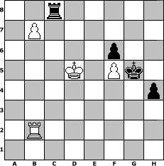 game notation in PGN-format [Event "Freibier f"] [Site "www.myChess.de"] [Date "2007.09.17"] [Round "1"] [White "PeterLoskarn"] [Black "Grubengeist"] [ECO "B07"] [WhitemyELO "2060"] [BlackmyELO "1945"] [Result "1/2-1/2"] [TimeControl "10/864000"] [WhiteDays "56"] [BlackDays "58"] [MyChessNo "38258"] 1. e4 d6 2. d4 Nf6 3. Nc3 g6 4. Be2 Bg7 5. Be3 c6 6. Qd2 b5 7. a3 Nbd7 8. Bh6 Bxh6 9. Qxh6 e5 10. Nf3 Ng4 11. Qd2 O-O 12. Rd1 a5 13. h3 Ngf6 14. dxe5 dxe5 15. Qd6 b4 16. axb4 axb4 17. Qxb4 c5 18. Qb3 Qc7 19. O-O Rb8 20. Qa3 Qb7 21. Bb5 Nxe4 22. Bxd7 Nxc3 23. Qxc3 Bxd7 24. Nxe5 Bf5 25. g4 Be6 26. b3 Rfd8 27. Rfe1 Rxd1 28. Rxd1 Rc8 29. Rd6 Qe7 30. Qd2 Ra8 31. Nd7 Ra1+ 32. Kg2 Bxd7 33. Rxd7 Qe4+ 34. f3 Qe1 35. Qxe1 Rxe1 36. Kf2 Rc1 37. Rd2 Kf8 38. Re2 f6 39. f4 Kf7 40. f5 gxf5 41. gxf5 Kg7 42. Ke3 Kh6 43. Rf2 Kg5 44. Kd3 h5 45. c3 Rb1 46. Kc4 h4 47. b4 cxb4 48. cxb4 Rc1+ 49. Kb3 Rg1 50. b5 Rg3+ 51. Kc4 Rxh3 52. b6 Rh1 53. Rb2 Rc1+ 54. Kd5 Rc8 55. b7 1/2-1/2 position notation in FEN-format 2r5/1P6/5p2/3K1Pk1/7p/8/1R6/8 - - - 0 55 Captured white pieces: Captured black pieces: Click on a captured piece in order to display the desired move!
