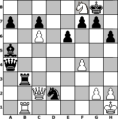 | game notation in PGN-format [Event "Winterturnier"] [Site "www.myChess.de"] [Date "2009.11.12"] [Round "1"] [White "beowulf"] [Black "reymund"] [ECO "E00"] [WhitemyELO "1355"] [BlackmyELO "1624"] [Result "0-1"] [TimeControl "10/3456000"] [WhiteDays "159"] [BlackDays "158"] [MyChessNo "60553"] 1. d4 Nf6 2. c4 e6 3. a3 Nc6 4. Nf3 d5 5. Nc3 Bd6 6. Bg5 O-O 7. c5 Be7 8. e3 b6 9. Bb5 Bd7 10. b4 h6 11. Bxf6 Bxf6 12. O-O Ne7 13. Bxd7 Qxd7 14. a4 Rab8 15. Qd3 Nc6 16. b5 Nb4 17. Qb1 bxc5 18. dxc5 Bxc3 19. Ra3 d4 20. exd4 Nd5 21. c6 Qd6 22. Rb3 Ba5 23. Ne5 Nb6 24. f4 Qxd4+ 25. Kh1 Nd5 26. Rd3 Qxa4 27. Rb3 Nc3 28. Qc2 Ne4 29. Rfb1 Nd2 30. Nd7 Rxb5 31. Nxf8 Rxb3 0-1 position notation in FEN-format 5Nk1/p1p2pp1/2P1p2p/b7/q4P2/1r6/2Qn2PP/1R5K - - - 0 32 Captured white pieces:                              Captured black pieces:                               Click on a captured piece in order to display the desired move!