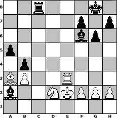 game notation in PGN-format [Event "fr"] [Site "www.myChess.de"] [Date "2011.10.14"] [Round "1"] [White "martinus"] [Black "Fedkopv"] [ECO "E60"] [WhitemyELO "1751"] [BlackmyELO "2035"] [Result "0-1"] [TimeControl "10/1728000"] [WhiteDays "17"] [BlackDays "19"] [MyChessNo "76808"] 1. d4 Nf6 2. c4 g6 3. Nf3 Bg7 4. Nc3 d5 5. e3 O-O 6. cxd5 Nxd5 7. Nxd5 Qxd5 8. Qc2 Bf5 9. Qxc7 Nc6 10. Bd2 e5 11. Rc1 Nxd4 12. exd4 Rac8 13. Qe7 Rxc1+ 14. Bxc1 Qc6 15. Qg5 exd4 16. Be2 Qe4 17. Qd2 d3 18. Qxd3 Qxd3 19. Bxd3 Bxd3 20. b3 Rc8 21. Kd1 Bb1 22. Nd2 Bxa2 23. Re1 Bf6 24. Ba3 a5 25. Re3 b5 26. Ke2 b4 0-1 position notation in FEN-format 2r3k1/5p1p/5bp1/p7/1p6/BP2R3/b2NKPPP/8 - - - 0 27 Captured white pieces: Captured black pieces: Click on a captured piece in order to display the desired move!