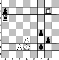 game notation in PGN-format [Event "Wrixum-Open die IV"] [Site "www.myChess.de"] [Date "2007.09.04"] [Round "1"] [White "Helmut48"] [Black "bluescreenlover"] [ECO "B23"] [WhitemyELO "1469"] [BlackmyELO "1294"] [Result "0-1"] [TimeControl "10/2592000"] [WhiteDays "30"] [BlackDays "28"] [MyChessNo "37788"] 1. e4 c5 2. Nc3 e5 3. Bc4 Nc6 4. Qf3 Nf6 5. d3 Nd4 6. Qd1 Be7 7. Be3 O-O 8. Bxd4 cxd4 9. Nd5 Qa5+ 10. Kf1 Nxd5 11. Bxd5 Bg5 12. Nf3 h6 13. Nxg5 hxg5 14. a3 d6 15. h3 Bd7 16. b4 Qb5 17. Qd2 Bc6 18. Bc4 Qb6 19. Qxg5 Qd8 20. h4 Qxg5 21. hxg5 Rac8 22. Ke2 Bd7 23. f3 Be6 24. Bxe6 fxe6 25. Kd2 Kf7 26. Rh4 Kg6 27. Rg4 Rf4 28. Rf1 Rc3 29. Rxf4 exf4 30. Ra1 Kxg5 31. b5 Kh4 32. Ra2 Kg3 33. Ke2 Kxg2 34. a4 d5 35. exd5 exd5 36. a5 Kg3 37. a6 bxa6 38. bxa6 Rc6 39. Kd2 Kxf3 40. Ra5 g5 41. Rxd5 g4 42. Rxd4 g3 43. Rd7 Rxa6 44. Rg7 Kf2 0-1 position notation in FEN-format 8/p5R1/r7/8/5p2/3P2p1/2PK1k2/8 - - - 2 45 Captured white pieces: Captured black pieces: Click on a captured piece in order to display the desired move!