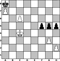 game notation in PGN-format [Event "Bobby Fischer Ged"] [Site "www.myChess.de"] [Date "2008.02.01"] [Round "1"] [White "nogumo"] [Black "brucybabe"] [ECO "A00"] [WhitemyELO "1681"] [BlackmyELO "1607"] [Result "1-0"] [TimeControl "10/864000"] [WhiteDays "38"] [BlackDays "48"] [MyChessNo "42181"] 1. b4 d5 2. Bb2 Nf6 3. e3 e6 4. b5 c6 5. Nf3 cxb5 6. Bxb5+ Bd7 7. Qe2 Be7 8. O-O O-O 9. c4 dxc4 10. Bxc4 Bc6 11. Nc3 Nbd7 12. Rfc1 a6 13. Rab1 Ne4 14. Nxe4 Bxe4 15. Bd3 Bxd3 16. Qxd3 Nf6 17. Qxd8 Rfxd8 18. Bxf6 Bxf6 19. Rxb7 Rdc8 20. Rxc8+ Rxc8 21. g3 Ra8 22. d4 Kf8 23. Nd2 Be7 24. Nb3 a5 25. Nc5 Ke8 26. Kf1 a4 27. a3 Bxc5 28. dxc5 Rc8 29. Rb5 Rc7 30. Ra5 Kd7 31. Ke2 Kc6 32. Kd3 Rd7+ 33. Kc4 Rd2 34. Ra6+ Kb7 35. Rxa4 Rxf2 36. Kb5 Rf5 37. Rb4 Re5 38. e4 f5 39. exf5 exf5 40. a4 g5 41. a5 h5 42. a6+ Kc7 43. a7 Kb7 44. Ra4 Ka8 45. Kb6 Re2 46. c6 Rb2+ 47. Kc5 Rc2+ 48. Rc4 Rxc4+ 49. Kxc4 1-0 position notation in FEN-format k7/P7/2P5/5ppp/2K5/6P1/7P/8 - - - 0 49 Captured white pieces: Captured black pieces: Click on a captured piece in order to display the desired move!