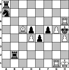 game notation in PGN-format [Event "Schach-Sommer"] [Site "www.myChess.de"] [Date "2014.05.13"] [Round "1"] [White "alpacino"] [Black "borsti"] [ECO "C25"] [WhitemyELO "1282"] [BlackmyELO "1235"] [Result "1-0"] [TimeControl "10/1728000"] [WhiteDays "19"] [BlackDays "20"] [MyChessNo "94409"] 1. e4 e5 2. Nc3 Bb4 3. Nce2 d6 4. c3 Ba5 5. Qa4+ Nc6 6. Nf3 Bd7 7. Ng3 b6 8. Bb5 Nge7 9. O-O O-O 10. Ng5 h6 11. Nf3 a6 12. Bxc6 Bxc6 13. Qc2 Ng6 14. d3 b5 15. Nf5 Bd7 16. Nxh6+ Kh8 17. Nf5 Bxf5 18. exf5 Ne7 19. f6 Ng6 20. fxg7+ Kxg7 21. Qd2 Rh8 22. d4 e4 23. Ng5 d5 24. Qe3 Rh5 25. Nh3 Qh4 26. Qg3 Re8 27. Qxh4 Rxh4 28. Be3 f6 29. a3 Rg8 30. Kh1 c6 31. Ng1 Bc7 32. g3 Rh5 33. a4 bxa4 34. Rxa4 a5 35. b4 Ra8 36. bxa5 Rhh8 37. a6 Bb6 38. Ne2 Rhc8 39. Rg1 Ne7 40. g4 Rcb8 41. Ng3 Bc7 42. Nh5+ Kg6 43. Nf4+ Bxf4 44. Bxf4 Rb3 45. g5 f5 46. Bd6 Nc8 47. Bc5 Rxc3 48. Raa1 Rc2 49. h4 Rxf2 50. a7 Rb2 51. Ra6 Kh5 52. Rxc6 Nxa7 53. Rh6# 1-0 position notation in FEN-format r7/n7/7R/2Bp1pPk/3Pp2P/8/1r6/6RK - - - 1 53 Captured white pieces: ![]() ![]() ![]() ![]() ![]() ![]() ![]() ![]() ![]() ![]() ![]() ![]() ![]() ![]() ![]() Captured black pieces: ![]() ![]() ![]() ![]() ![]() ![]() ![]() ![]() ![]() ![]() ![]() ![]() ![]() ![]() ![]() Click on a captured piece in order to display the desired move!