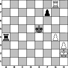 game notation in PGN-format [Event "Labourdonnais Variante 1.e4 e6 2.f4"] [Site "www.myChess.de"] [Date "2008.08.27"] [Round "1"] [White "Rufus"] [Black "martinus"] [ECO "C00"] [WhitemyELO "1707"] [BlackmyELO "1915"] [Result "1/2-1/2"] [TimeControl "10/864000"] [WhiteDays "63"] [BlackDays "60"] [MyChessNo "47535"] 1. e4 e6 2. f4 d5 3. e5 c5 4. Nf3 Nc6 5. Be2 Nge7 6. b3 g6 7. O-O Bh6 8. d4 cxd4 9. Nxd4 Qb6 10. Be3 Nxd4 11. Bxd4 Qc7 12. c4 O-O 13. Nc3 a6 14. cxd5 Nxd5 15. Nxd5 exd5 16. Rc1 Qa5 17. Bc5 Rd8 18. b4 Qc7 19. Qd4 Qb8 20. Bb6 Re8 21. Bf3 Be6 22. Bxd5 Bxd5 23. Qxd5 Re7 24. Qf3 Qe8 25. Bc7 Rc8 26. Bd6 Re6 27. Rxc8 Qxc8 28. f5 gxf5 29. Qxf5 Qe8 30. Qf3 b6 31. a3 Bg7 32. Qg3 Kh8 33. Qf2 Kg8 34. Qd4 Bxe5 35. Bxe5 Rxe5 36. Qxb6 Re6 37. Qb7 Re1 38. Qf3 Re3 39. Qg4+ Kf8 40. Qd4 Kg8 41. Qf6 Qe6 42. a4 Rb3 43. Qd8+ Kg7 44. Qd4+ Kg8 45. h3 h6 46. Kh2 Qe7 47. Rc1 Rxb4 48. Rc8+ Kh7 49. Qh8+ Kg6 50. Rg8+ Kf5 51. Qh7+ Ke6 52. Qxh6+ Kd7 53. Qxa6 Qe5+ 54. Rg3 Rb3 55. Qa7+ Ke8 56. Qa8+ Ke7 57. Qg8 Rb4 58. Qg5+ Qxg5 59. Rxg5 Rxa4 60. g4 Kf6 61. Rg8 Ke5 1/2-1/2 position notation in FEN-format 6R1/5p2/8/4k3/r5P1/7P/7K/8 - - - 3 62 Captured white pieces: Captured black pieces: Click on a captured piece in order to display the desired move!